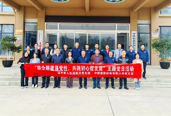 为深入实施公司党委党建融入中心质量提升年,10月9日,中陕核新材料有限公司党支部与潼关县人社局机关党支部开展了“政企联建强党性,共践初心促发展”政企联建主题党日活动,新材料公司副总经理刘振川,潼关县人社局副局长张亚妮、副局长程钢、副局长刘涛及双方党员代表参加了此次活动,活动由新材料公司总工程师戴翔主持。