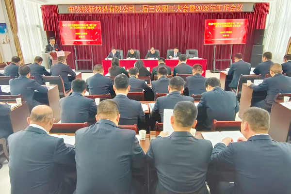 2月9日,中陕核新材料有限公司召开了二届三次职工大会暨2026年工作会议。公司党委书记、董事长郭金锁,党委委员、副总经理、工会主席杨夏,综合办公室兼党群工作部部长段俊英,财务管理部部长任芳,经营发展部部长王文波一行出席并到会指导。公司副总经理、新材料公司党支部书记、执行董事、总经理王强、新材料公司领导班子及各部门(车间)47名职工代表参加了大会。大会由新材料公司副总经理、分会主席郑银龙主持。