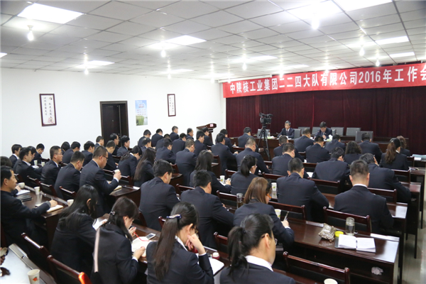 [2016-07-26]二二四大队有限公司召开2016年工作会2月2日上午,二二四大队有限公司召开2016年工作会。公司全体中层以上领导干部、二级单位项目经理、财务人员和机关全体工作人员参加了会议。公司党委书记罗芳哲传达了集团公...