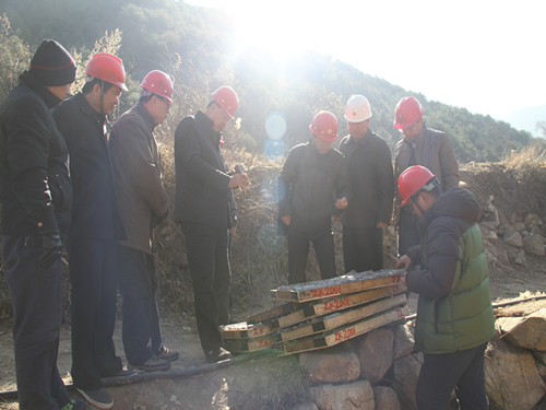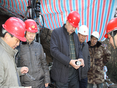 刘副总一行到达项目驻地后,随即冒着凛冽的寒风赶往施工现场。山里的路蜿蜒崎岖,一个个陡坡和一片片密林交错,由于冬季路面结冰湿滑,一行人气喘吁吁来到位于半山腰的钻探施工现场。大家不禁感叹,一次行走就让人如此难忘,那日日夜夜工作在这里的地质人付出了多少艰辛啊!在了解了施工情况、查看岩心和矿心、检查过安全后,检查组回到项目驻地,听取了地调院该项目负责康清清、地质工程公司该项目负责刘连友关于工作进展情况的汇报。听取汇报后,史部长、张副部长、罗书记等从专业角度对项目部的工作进行了剖析与指导。刘副总对两个项目部的工作给予了充分肯定,对大家在冰天雪地环境下艰苦作业表示慰问,并当场为项目部所有职工发放了慰问金。他还对下步工作提出了指导意见,要求项目部高度重视冬季施工安全,确保施工质量,努力实现地质成果的突破。