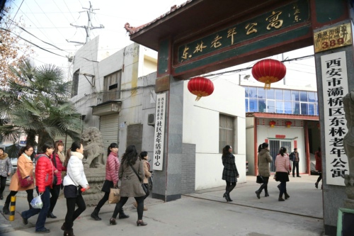 这是一座闹市中的雅致小院,几缕春风拂过,树木已染新芽。乙未年正月恰逢“三八”国际妇女节,院内大红灯笼高挂,节日气氛正浓。在这美好的日子里,大队女职委带领女职工志愿服务队走进小院——灞桥区东林老年公寓做义工,传承敬老美德,与友善同行,给老人们送去了关爱、欢笑与祝福,和老人们共同度过了一个幸福而美好的节日。