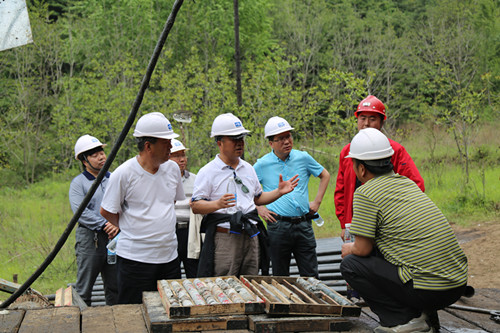 高副总一行首先来到华阳川项目钻探施工现场,实地查看岩芯特征,询问钻探工作进展,叮嘱现场施工人员保重身体,注意安全。