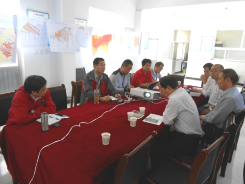 交流会上,秦副总经济师对公司为调研工作所做的努力表示感谢,他指出:本次实地调研的目的是为了筹备陕煤集团与陕核集团合作成立投资公司所开展的前期考察,通过今天的实地调研工作,对华阳川矿床有了更为深入的了解。吕部长针对目前情况提出:项目部要进一步开展选冶工艺试验和经济评价,他还详细询问了未来矿山建设、交通及水电等相关环境情况。高工米静远就华阳川矿床工业指标选用、控矿条件以及勘查前景和与会人员进行了深入交流。最后,专家组一行对此次调研工作所取得的成果表示肯定,并表示将进行进一步研究。