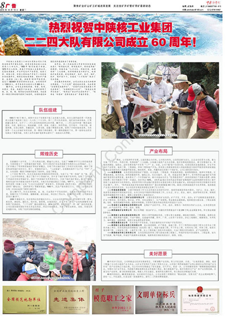 中陕核工业集团二二四大队有限公司 版权所有 | 陕ICP备16000150号 单位地址:陕西省西安市浐灞生态区长乐东路4688号中陕核资源大厦 联系电话:029-83559512 邮编:710000 建议您使用1600 X 900以上分辨率及IE8.0以上版本浏览器 技术支持:秦云数据
