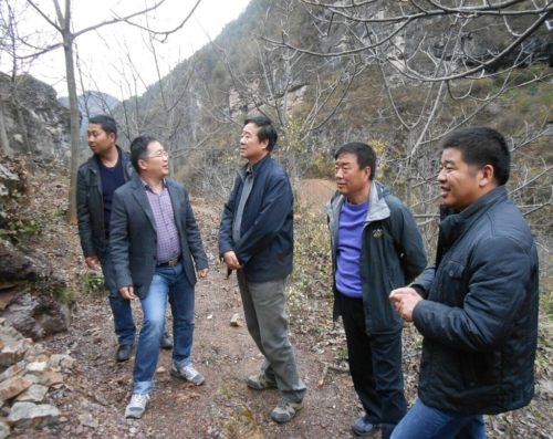 孔总经理一行首先来到洛南县石门镇石英玉矿产资源调查项目,实地查看了野外矿体露头情况,在野外施工地进行了现场指导。随后,在项目部听取了项目负责杨海宏关于当前工作进展、存在的问题及下一步工作计划等情况汇报。听取汇报后,孔总经理强调,公司对洛南项目寄予厚望,希望在今后的工作中能有更大突破。高总指出,要在工作区范围内以及周边区域进行多项调查,对有利的矿化线索或矿化较好地段进行采集样品,收集好野外第一手基础资料。