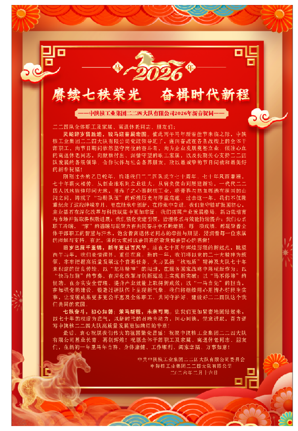 赓续七秩荣光 奋楫时代新程 ——中陕核工业集团二二四大队有限公司2026年新春贺词