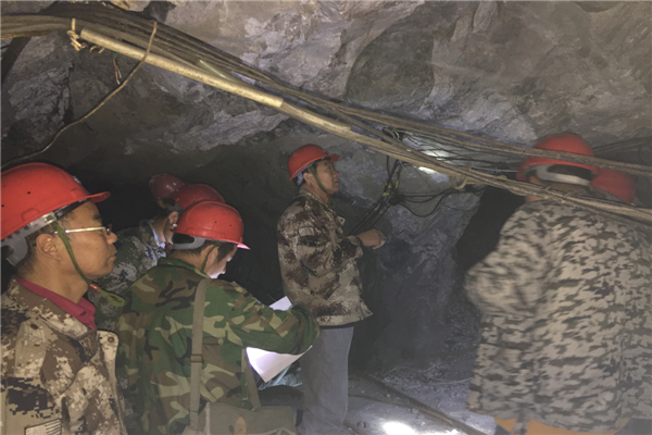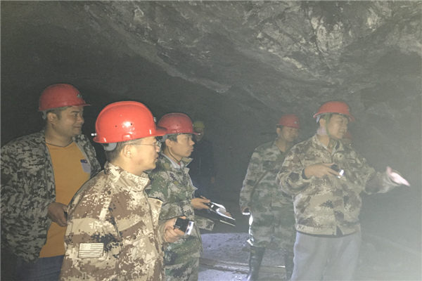 整整4个小时,高总一行逐个查看,不放过一个巷道。在坑道内查看过程中每遇到明显的矿化或找矿标志时,高总都会详细讲解矿体的形成因素,他深刻的剖析与透彻的讲解,解决了令项目人员困惑的问题。根据实地勘查情况,高总对下一步工作设计进行了现场指导。