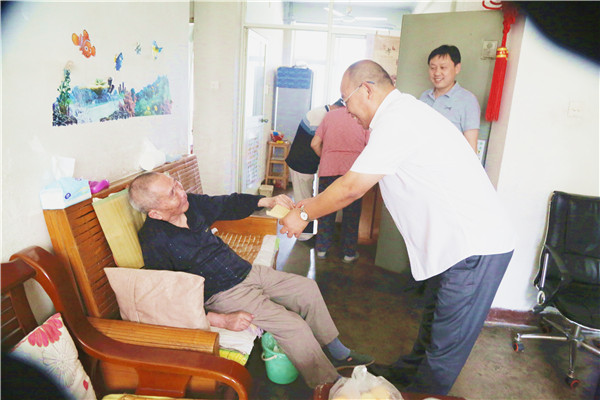 为纪念中国共产党成立96周年,充分体现党组织对党员和职工群众的关心和爱护,深入推动“两学一做”学习教育常态化制度化,6月30日上午,公司党委书记吴杰、公司纪委书记兼工会主席刘海峰深入家属小区走访慰问老党员和生活困难党员、职工群众,向他们致以节日的问候,为他们送上党的关怀温暖。公司党群工作部、离退休管理中心等相关职能部门负责人一同走访慰问。