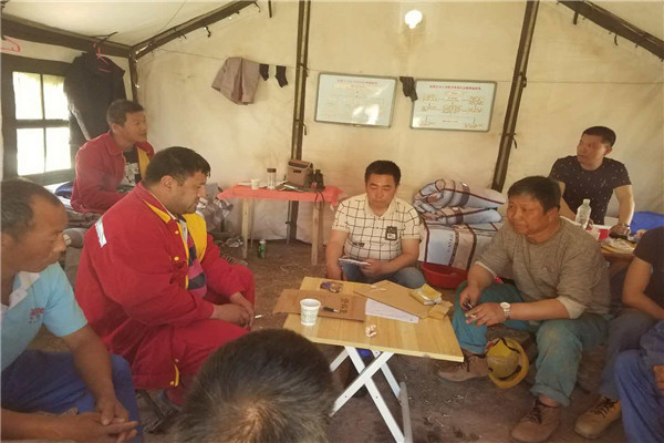 住宿、温饱、安全难题得以解决,项目员工开始了施工前期准备工作,机长带领机组人员检修设备,分类整理施工所需物资;晚上,组织大家学习了地质工程公司的进疆注意事项、三级安全教育、安全管理制度和劳动纪律;项目安全员王旭华带领机组人员学习了安全生产知识、安全操作规程和岗位职责制。