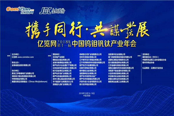 10月16日至18日,以“携手同行·共谋发展”为主题的第十一届中国钨钼钒钛产业年会在西安隆重举行,会议由亿览网主办,金堆城钼业股份有限公司联合主办,黑龙江伊春鹿鸣矿业有限公司、洛阳栾川钼业集团股份有限公司、美国克莱迈克斯钼业(Climax Molybdenum)、中陕核钼业有限公司协办,来自国内外300余家企业,500余代表共享盛会,创历年会议规模新高。