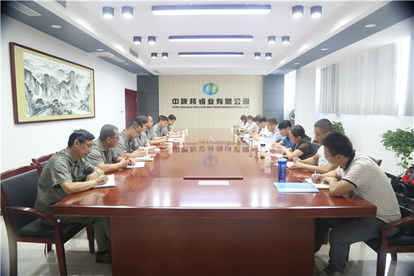 董事长田社生一行在二二四大队副总经理、中陕核钼业有限公司总经理康清清等人的陪同下,先后检查了氧化钼车间、硫酸车间、钼铁车间,查看了职工办公条件和生活环境,就相关工作进展情况和生产工艺问题进行了交流。座谈会上,董事长田社生听取了康清清等人关于分管工作情况的汇报后,对钼业公司现阶段工作成绩表示肯定,对做好防暑降温工作提出了要求:一是做好防暑降温,合理安排高温时节作息时间,严禁在极高温天气下开展野外作业;二是做好一线职工劳动保护工作,注意安全生产;三是不断提高自我保护和安全防范意识,确保安全生产、有序生产、健康生产。