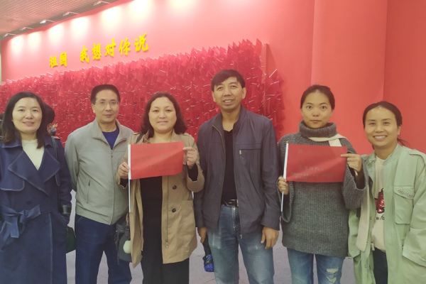 展览通过“家国情怀”“追赶超越”“不忘初心”等板块,全方位、立体化生动展现了新中国成立70年来国家和陕西省发生的翻天覆地的新变化新成就。驻足展厅主题版块,大家认真参观,聆听讲解,仔细阅读,细细品味,深切领会了新中国70年来不断砥砺奋进的坚实脚步和三秦儿女不断追赶超越的奋进步伐。在“奋斗足迹”展板,大家面对党旗,庄严地举起右臂,以铿锵有力的誓词铭记党员初心使命,彰显爱国奋斗情怀;在“祖国,我想对你说”板块,大家纷纷在红旗上写下祝福语,满怀深情地向祖国告白,衷心祝福伟大祖国繁荣昌盛。