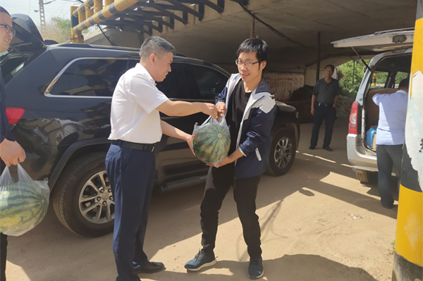 5月26日上午,公司副总经理、测绘院总经理胡祺一行到商洛市商州区房地一体试点项目检查指导工作并慰问一线职工,为他们送来了西瓜、饮料等慰问品。