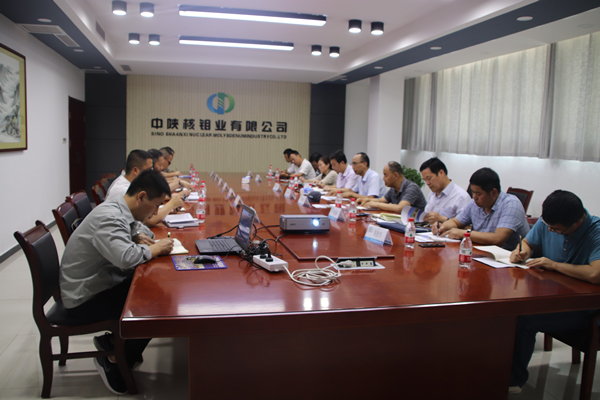 6月4日,集团公司副总经理胡刚、渭南市发改委副主任张宏升一行到中陕核钼业有限公司调研指导工作。集团公司发展规划部部长刘跃华、科技信息部部长肖民禄、二二四大队党委书记、董事长田社生、二二四大队副总经理、钼业公司总经理康清清等陪同调研。