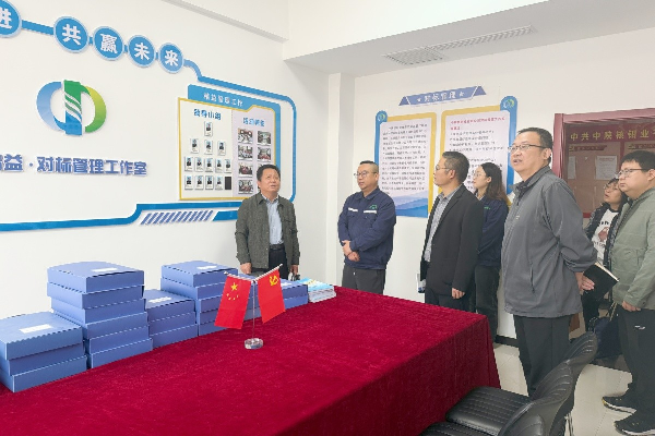 调研组一行首先深入企业一线,全面了解新材料公司发展历程、生产经营现状及核心业务布局。在职工食堂,调研组细致核查了餐具消毒设备配置、餐食留样规范管理、就餐环境舒适度及食品安全全流程保障措施,对企业后勤保障的精细化水平给予充分认可。随后,调研组前往新材料公司办公楼,实地参观了党员之家、渭南市示范性劳模创新工作室及精益对标管理工作室等功能场所,通过现场查看台账资料、听取情况介绍,直观掌握了新材料公司在基层党建引领、技术创新突破、精益管理提效等方面的实践成果。