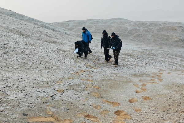 春染东天山,实干正当时。连日来,在广袤的戈壁与山间,地质调查院新疆哈密市伊州区梅岭东铜矿普查项目的勘查队员们顶风踏壑、攻坚克难,以脚步丈量大地,用科技探寻矿藏,全力推进野外勘查作业,在戈壁荒漠中彰显新时代地质人的责任与担当。