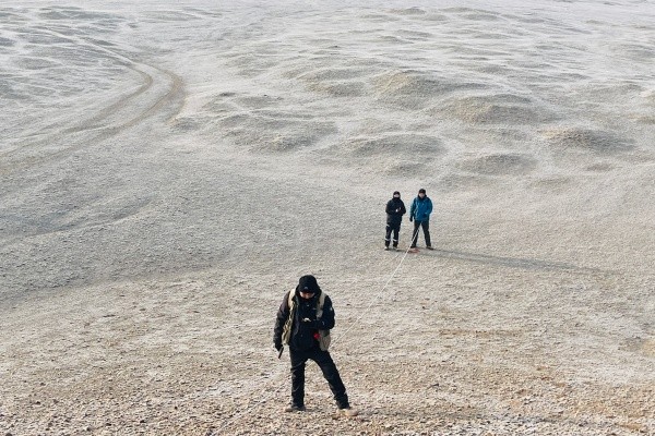 晨曦初露,寒意未减,勘查队员已背起行囊、携带仪器奔赴野外一线。他们穿行沟壑、踏遍戈壁,细致观测地质露头,精准记录岩矿特征,规范采集岩矿样品。风沙肆虐时,队员们裹紧工装坚守岗位,一丝不苟完成地质点数据采集;午间高温炙烤下,他们顶着烈日奔走一线毫不松懈,不放过任何矿化线索。