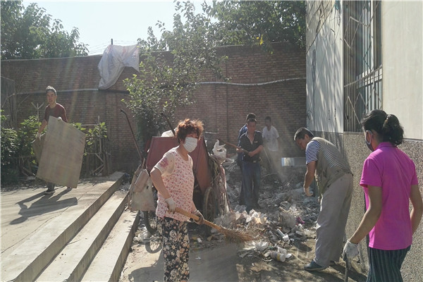 为构建文明和谐美丽小区, 7月13日7:20分,物业管理中心主任孙卫带领中心全体职工对单身职工公寓及周边环境进行了大扫除。