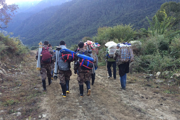 该项目的任务量为四十公里,目前已经完成二十公里的工程测量。项目部位于墨脱县格当乡,临近中印边境,方圆数百公里原始森林密布,交通不便、荒无人烟,是我国最晚通车的县,2013年,第一条公路才正式通车。项目部距离县城很远,不通道路,缺水、断电、无网络信号,一切生活物资全靠人挑肩扛,走数十公里山路运输进来。