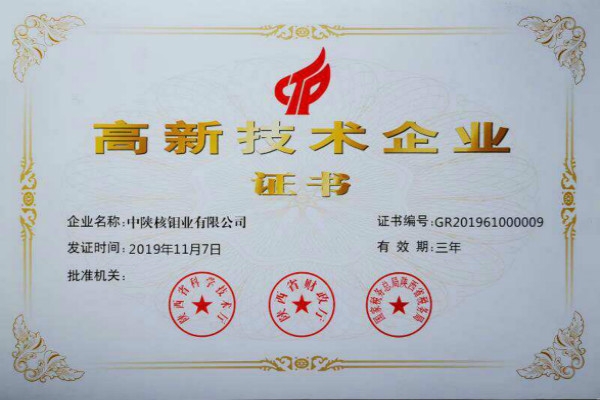 近日,中陕核钼业有限公司正式收到由陕西省科学技术厅、陕西省财政厅和国家税务总局陕西省税务局联合颁发的“高新技术企业”证书,自此,钼业公司正式迈入高新技术企业行列。