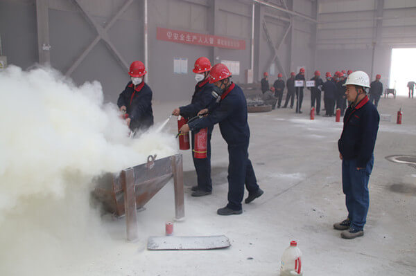 本次消防演练分为理论培训和实践操作。培训会上,公司安全员重点就灭火器的使用说明和基本方法进行了培训,并现场演示。培训会后,职工们5人一组进行实践操作,对准演习火场中火苗的根部方向,将火苗进行了扑灭。整个过程配合默契,一气呵成,切实让参训职工学以致用。